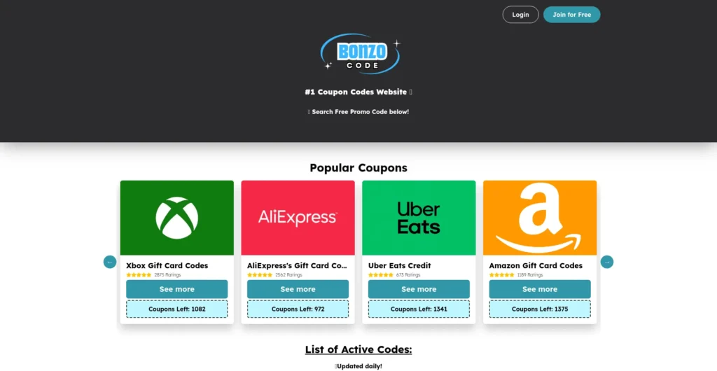 Bonzo-Code.com is an online platform that provides free promo codes, gift cards, and discount deals for popular services such as Netflix, Spotify, Amazon, and gaming platforms.